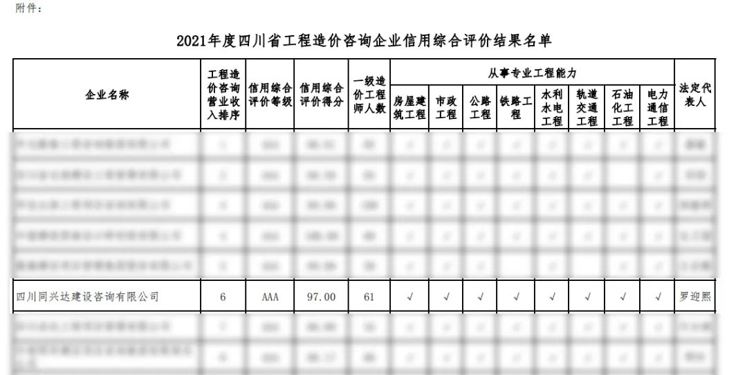 四川省造价工程师协会(英文名称:Sichuan Cost Engineer Association,缩写SCCEA)c成立于1993年,是经四川省住房和城乡建设厅同意、四川省民政厅核准登记,具有法人资格的省级社会团体。根据在四川省造价工程师协会网上查询到的消息,四川省造价咨询公司排名在前的企业——同兴达咨询已经连续九年获评省工程造价咨询企业AAA级信用,彰显了同兴达咨询在履约能力、投标信誉、竞争力、软实力和信誉度的提升;展现了同兴达咨询经营健康,发展前景广,风险防范能力强,是非常值得信赖的商业合作伙伴。