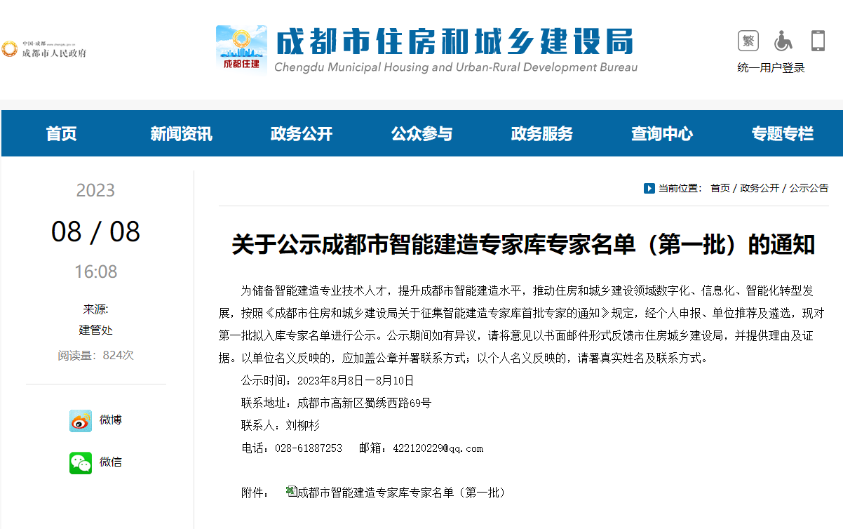 近日,成都市住建局发布《关于公示成都市智能建造专家库专家名单(第一批)的通知》,成都造价咨询公司同兴达咨询两名高级工程师成功入库。入选成都市智能建造专家库的专家后,将作为储备人才为提升成都市智能建造水平,推动住房和城乡建设领域数字化、信息化、智能化转型发展,贡献同兴达咨询的力量。